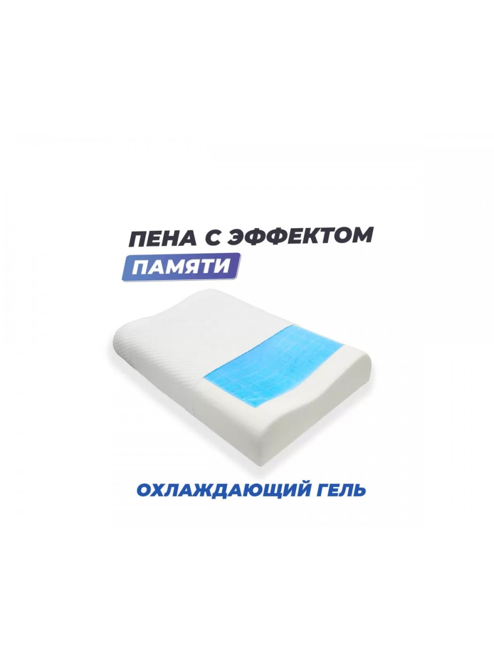 Особенности эргономичная форма с двумя валиками разной высоты, охлаждающий гель поддерживает оптимальный микроклимат и снижает температуру, гипоаллергенный материал, подходит для сна на боку и спине