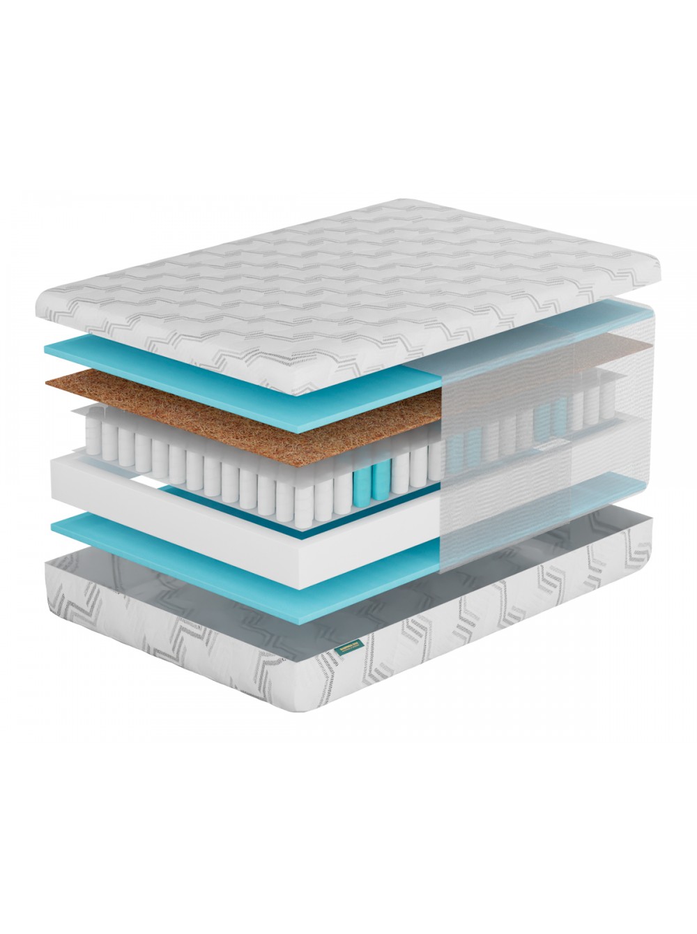 5. Пружинный блок Pocket Spring- 7 зон 14см - более совершенный тип пружинного блока, каждая из пружин которого находится в отдельном чехле из нетканого полотна. Пружины, соединенные в шахматном порядке, работают независимо, что позволяет оптимально (точечно) распределять нагрузку тела, усиливая ортопедический эффект. Матрас с таким пружинным блоком обладает свойством идеально повторять контуры тела, что делает его максимально анатомическим. Благодаря точечной эластичности матраса у него отсутствует «эффект волны». Двуспальные модели такого матраса особенно подойдут для сна людям с большой разницей в весе.