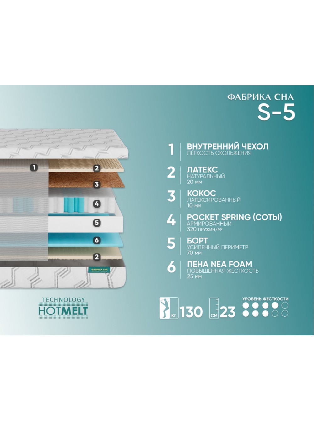 4. Air Foam 2,5см - антиаллергенный, вспененный материал высокой плотности. Air Foam system позволяет повысить комфортность матраса, испытать человеку неповторимые ощущения во время отдыха, улучшить качество его сна.